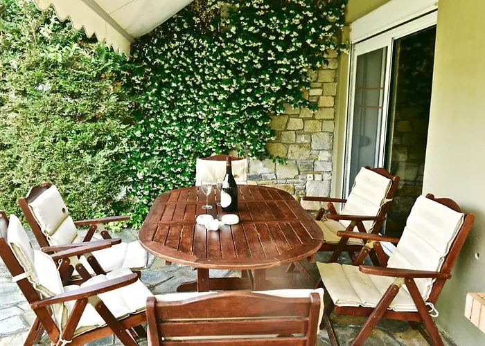 Oikos别墅设有凉亭 和野餐区,在Hanioti Beach旁边。 在露台上可以欣赏到花园美景。